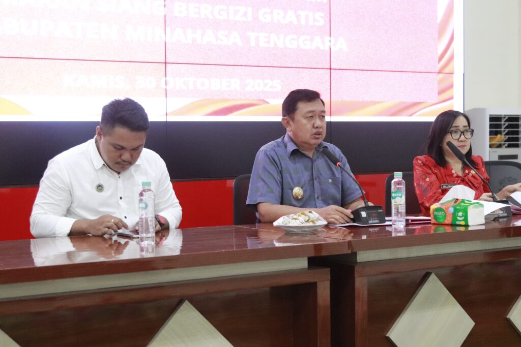 MITRA, MSN – Atas Nama Bupati Ronald Kandoli, Wakil Bupati Fredy Tuda di dampingi Asisten II Feibe Punuindoong, secara resmi membuka rapat koordinasi antara Pemerintah Kabupaten Minahasa Tenggara dengan Satuan Tugas (Satgas) Percepatan Penyelenggaraan Makanan Bergizi Gratis hari ini, Kamis (30/10) .
