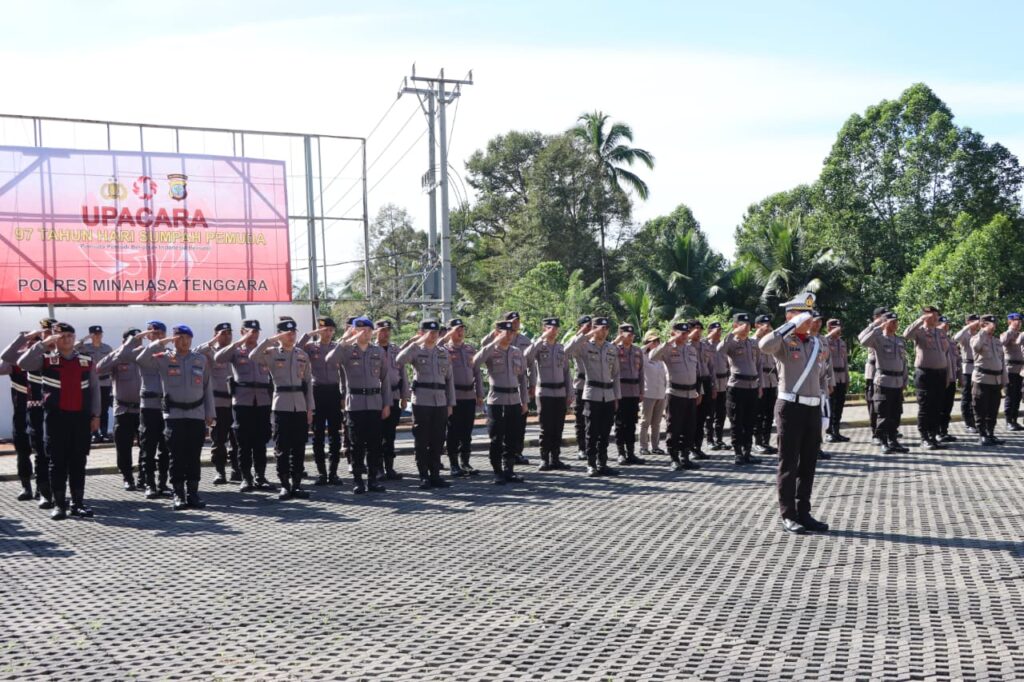 MITRA, MSN – Kapolres Minahasa Tenggara (Mitra), AKBP Handoko Sanjaya, S.I.K., M.Han., memimpin upacara bulanan Polres Mitra Senin (03/11/2025).