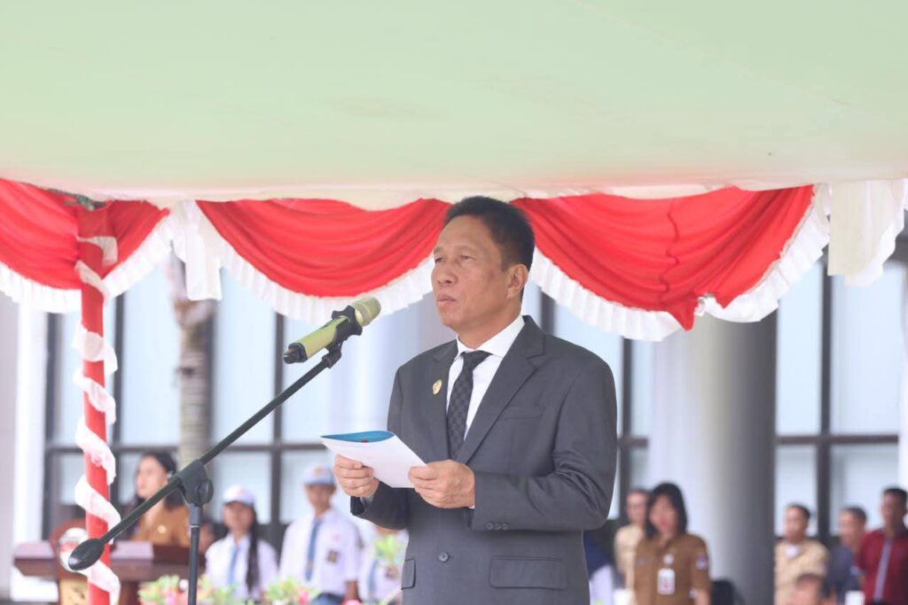 MINSEL, MSN – Bupati Minahasa Selatan Franky Donny Wongkar, S.H., bersama Wakil Bupati Brigjen TNI (Purn.) Theodorus Kawatu, S.I.P., menghadiri Upacara Bendera dalam rangkan memperingati Hari Pahlawan Tahun 2025 yang digelar di Lapangan Kantor Bupati Minahasa Selatan, Senin (10/11/2025).
