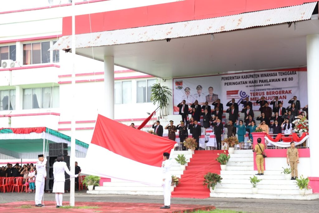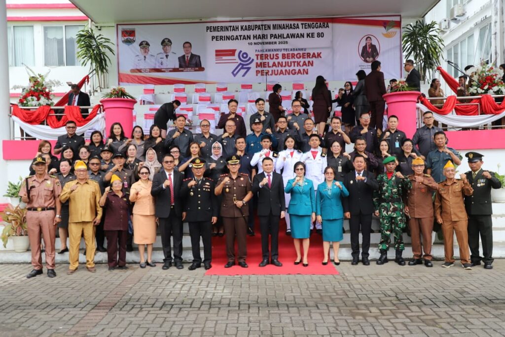 MITRA, MSN – Upacara peringatan Hari Pahlawan Ke-80 yang jatuh pada tanggal 10 November berlangsung khidmat di Kabupaten Minahasa Tenggara, Senin (10/11).