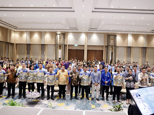 Kegiatan yang mengangkat tema “Menenun Masa Depan Ekonomi Biru dan Hijau” ini dihadiri ribuan mahasiswa dari berbagai perguruan tinggi, di antaranya Unsrat, Unima, IAIN Manado, Unsrit, hingga Universitas Terbuka, serta para rektor dari masing-masing kampus.