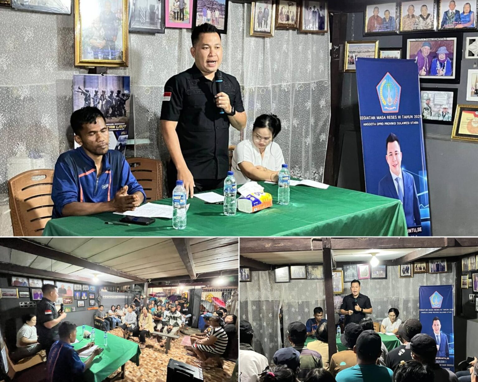 Ketua Komisi I DPRD Sulut itu menggelar reses di tiga desa berbeda, dan pertemuan tersebut dipadati warga yang hadir untuk menyampaikan berbagai kebutuhan serta permasalahan yang mereka hadapi.