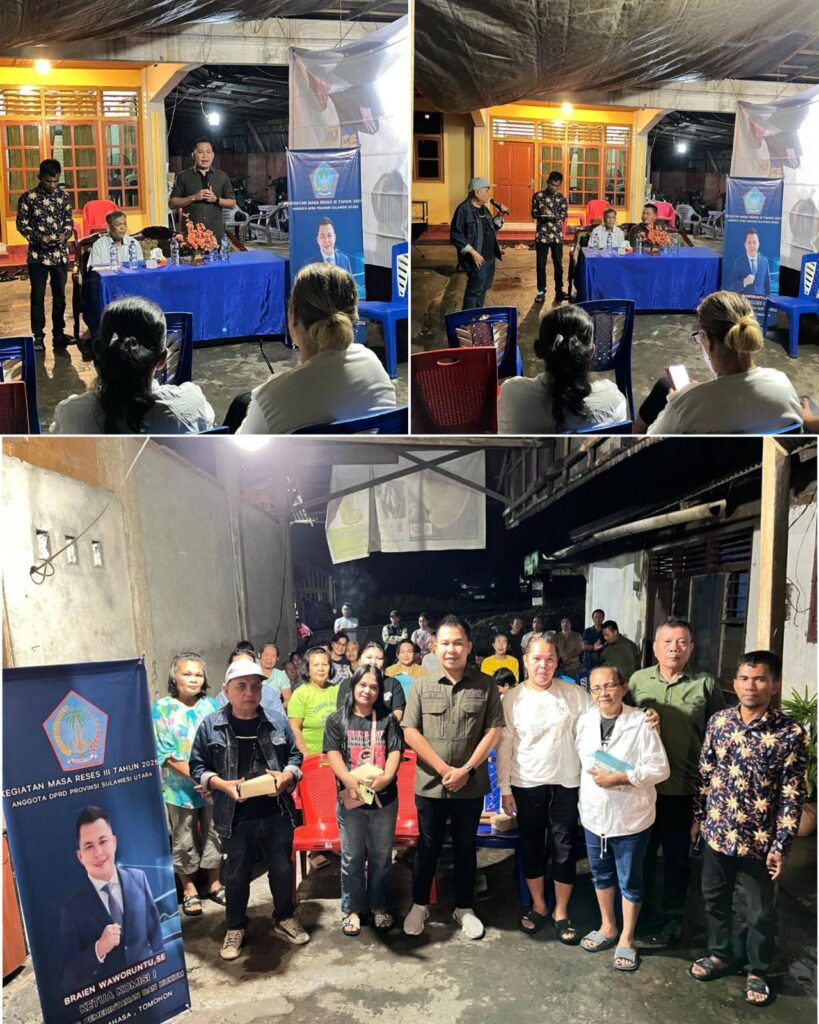MSN-SULUT. Masa Reses Pimpinan dan Anggota DPRD Provinsi Sulawesi Utara yang berlangsung sejak 29 November hingga 2 Desember 2025 dimanfaatkan Anggota DPRD Sulut, Braien R. Waworuntu, untuk turun langsung menyapa masyarakat di daerah pemilihannya.
