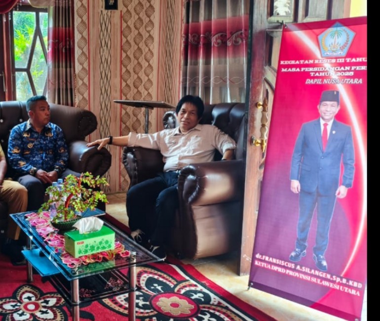 MSN-SULUT. Ketua DPRD Provinsi Sulawesi Utara, dr. Fransiscus Andi Silangen, Sp.B., KBD., melakukan Reses III Masa Persidangan Pertama Tahun 2025 di Daerah Pemilihan (Dapil) Nusa Utara, Senin (1/12/25). Kegiatan penjaringan aspirasi kali ini dipusatkan di tiga kampung, yakni Talawid, Batusenggo, dan Kapeta, Kecamatan Siau Barat Selatan.