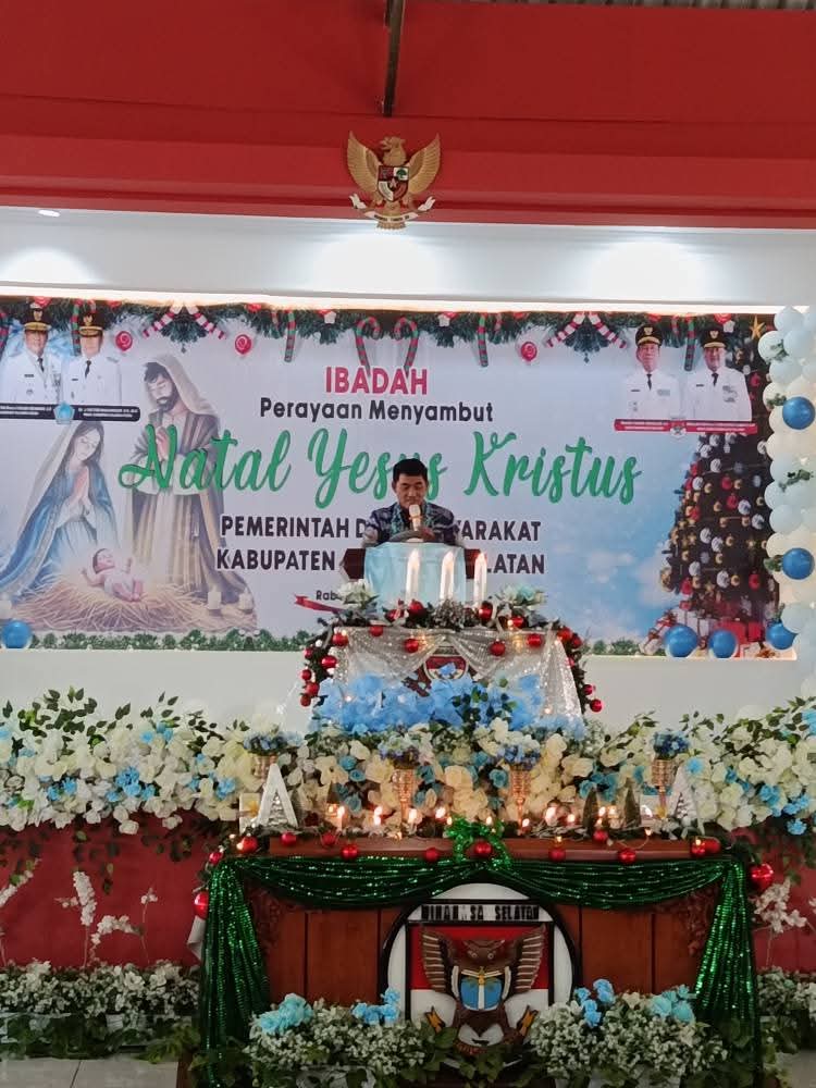 MSN-SULUT. Perayaan Natal bersama Pemerintah Provinsi Sulawesi Utara dan masyarakat Kabupaten Minahasa Selatan berlangsung penuh sukacita, kehangatan, dan kebersamaan, Rabu (17/12/25), di Kantor Bupati Minahasa Selatan.