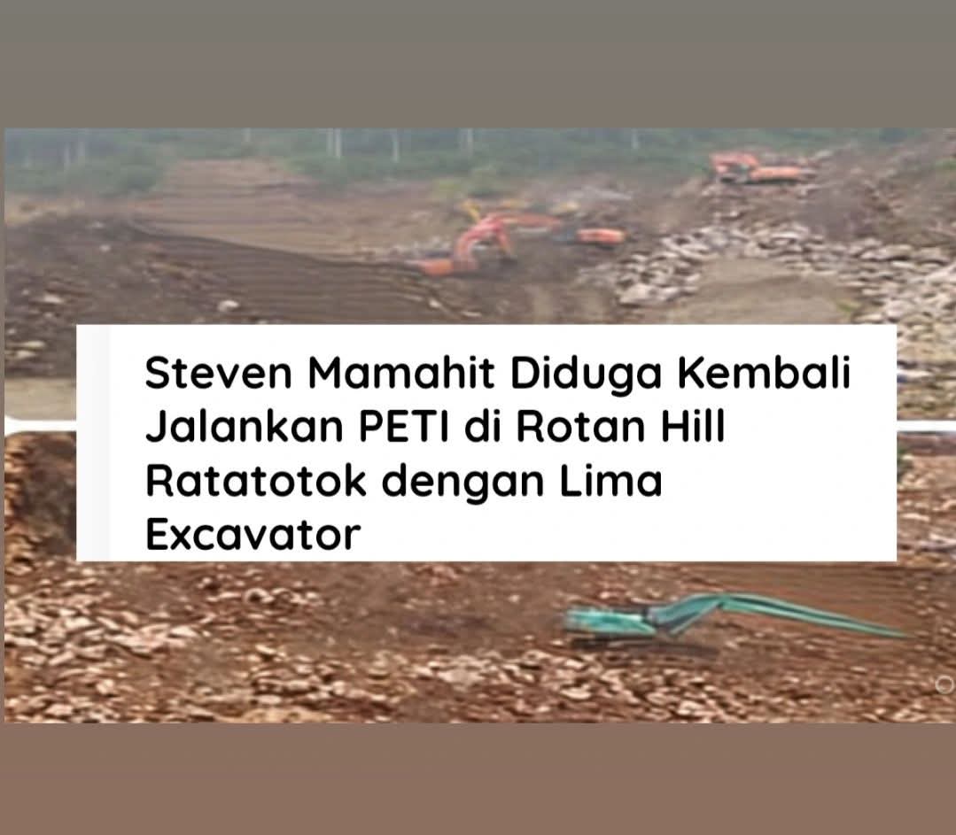 MITRA, MSN – Aktivitas Pertambangan Emas Tanpa Izin (PETI) yang sebelumnya telah diberantas dan ditutup di kawasan Rotan Hill, yang masuk dalam wilayah Kebun Raya Ratatotok Kabupaten Minahasa Tenggara, kini diperkirakan kembali berjalan aktif. Informasi yang diterima media mengarah pada dugaan keterlibatan Steven Mamahit sebagai pihak yang mengelola secara utama aktivitas tambang ilegal tersebut.