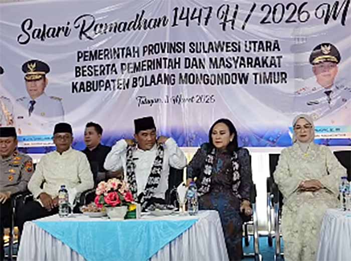 BOLTIM – Agenda Safari Ramadhan Pemerintah Provinsi Sulawesi Utara terus berlanjut. Setelah sebelumnya melaksanakan Safari Ramadhan di wilayah Bolaang Mongondow, Bolaang Mongondow Selatan dan Kota Kotamobagu, hari ini, Rabu (11/3/2026), Gubernur Sulawesi Utara Yulius Selvanus bersama Ketua TP PKK Sulut Ny. Anik Yulius Selvanus melanjutkan rangkaian Safari Ramadhan Pemerintah Provinsi Sulawesi Utara mengunjungi Kabupaten Bolaang Mongondow Timur (Boltim),