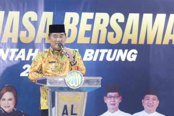 BITUNG – Safari Ramadhan Pemerintah Provinsi Sulawesi Utara (Sulut) terus berlanjut. Gubernur Sulawesi Utara, Mayjen TNI (Purn) Yulius Selvanus, SE, bersama Ketua TP-PKK Sulut Ny. Anik Yulius Selvanus menghadiri agenda Safari Ramadan Pemerintah Provinsi Sulawesi Utara yang dirangkaikan dengan buka puasa bersama Pemerintah dan masyarakat Kota Bitung. Kegiatan tersebut dilaksanakan di Masjid Nurul Huda, Kelurahan Bitung Timur, Kecamatan Maesa, Jumat (13/3/2026).