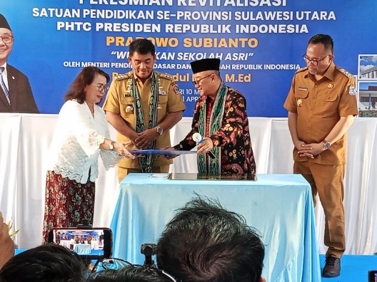 MANADO — Menteri Pendidikan Dasar dan Menengah, Prof. Dr. Abdul Mu’ti, M.Ed meresmikan revitalisasi satuan pendidikan se-Provinsi Sulawesi Utara di TK Negeri 10 Manado, Selasa (21/4/2026). Kegiatan ini menjadi bagian dari program pemerintah pusat di bawah kepemimpinan Presiden Prabowo Subianto untuk mewujudkan sekolah yang asri dan layak di seluruh Indonesia.